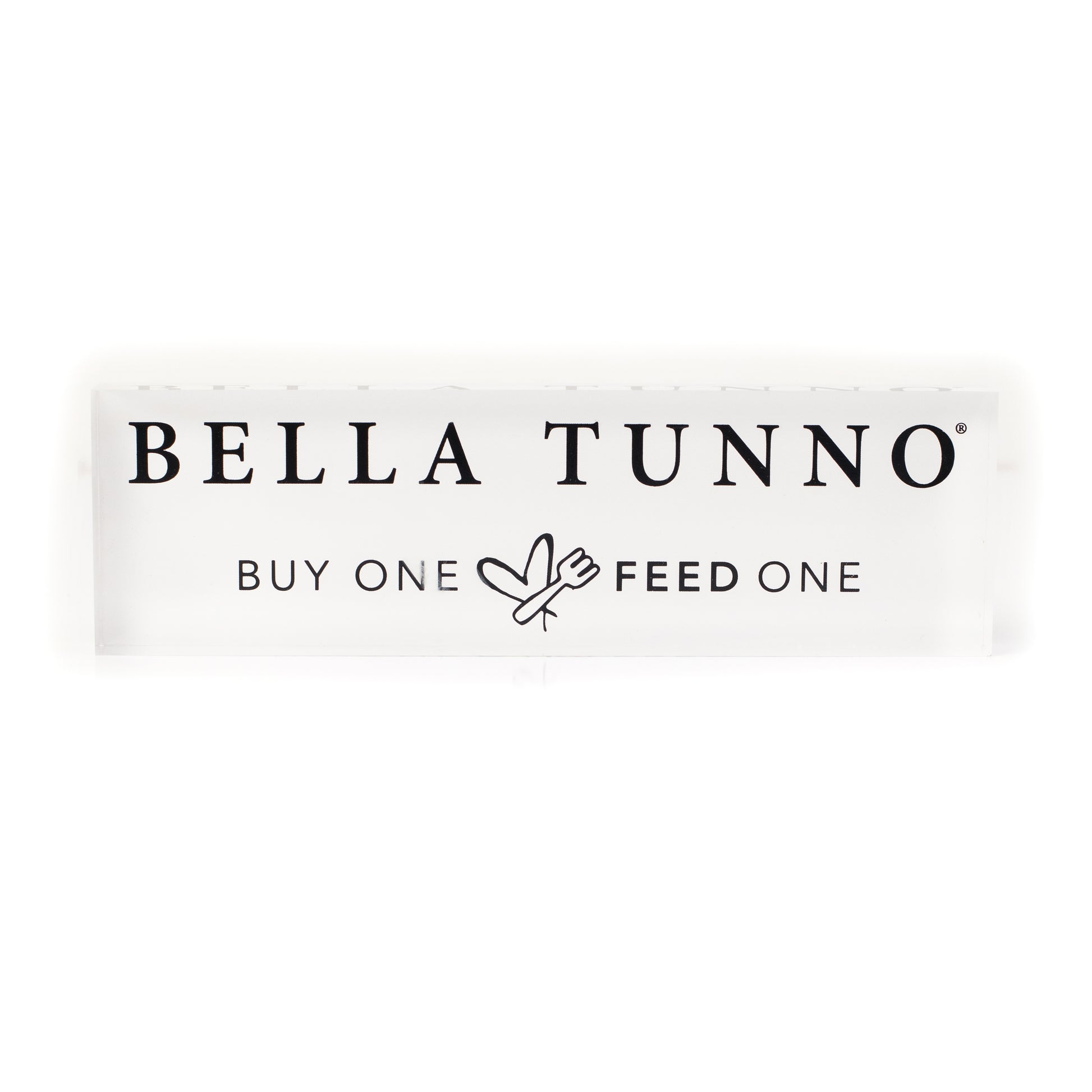Our high-quality brand block reminds your customers that for every product sold, Bella Tunno donates 1 meal to 1 child in need.